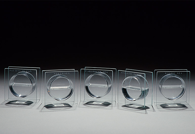 I invited my friends from all over the world to send me a sample of water from their nearest sea or ocean – the idea behind the being one of stressing similarity over difference and division.